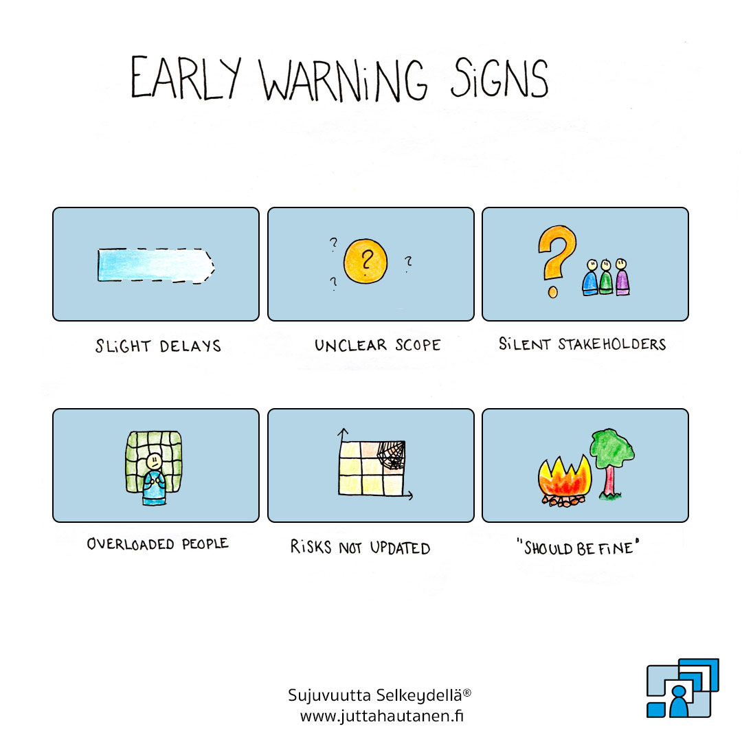 Projektin riskit ovat usein nähtävissä, mutta niiden varoitusmerkkejä ei huomata tai niihin ei reagoida.